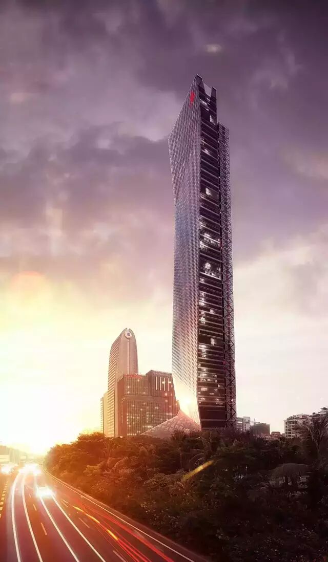 目前全球最高、设计最具整体雕塑感、艺术创意型极强的全钢结构超高层建筑———深圳汉京金融中心正在崛起。