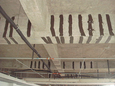裂缝封闭处理通常分为两种措施:裂缝修补和裂缝注浆。裂缝修补是沿裂缝通长凿成V型,采用修补材料将裂缝予以封闭。裂缝注浆是将改性环氧树脂通过外部施加压力(如注浆泵或针筒)注入裂缝并填充。裂缝封闭处理的目的是恢复砼构件的整体性,避免砼构件中的钢筋受到氧化侵害,改良砼构件的受力效果,提升砼构件的承载力。当然,对于结构性裂缝,除了需要进行封闭处理以外还需进行一定的加固措施。